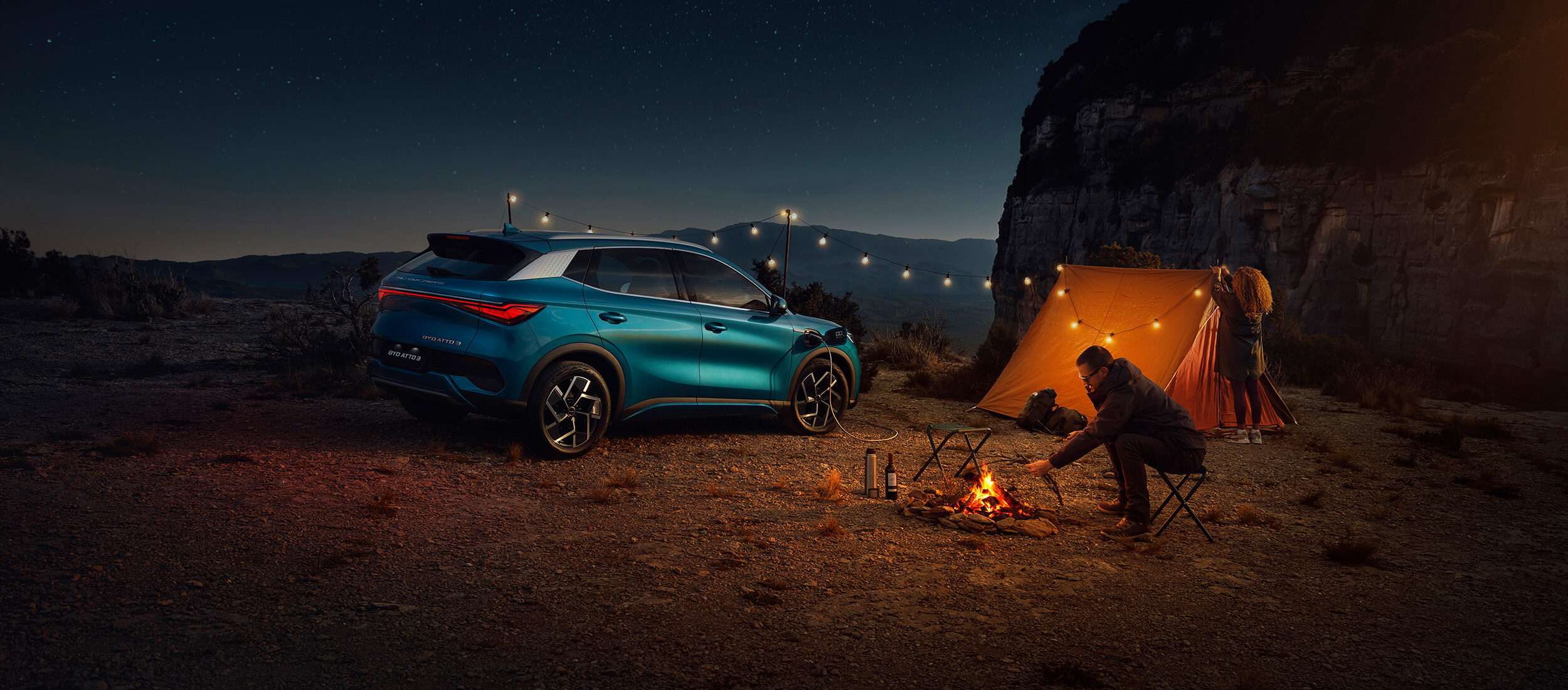 Der BYD ATTO 3 unterstützt Ihren Outdoor-Lifestyle mit der innovativen Vehicle-to-Load-Technologie (V2L). Diese Funktion verwandelt Ihr Fahrzeug in eine mobile Powerbank, die es Ihnen ermöglicht, eine Vielzahl von Geräten anzuschließen – sei es die Kaffeemaschine, Lampen oder sogar Videokonsolen. Ihrer Kreativität sind dabei keine Grenzen gesetzt.