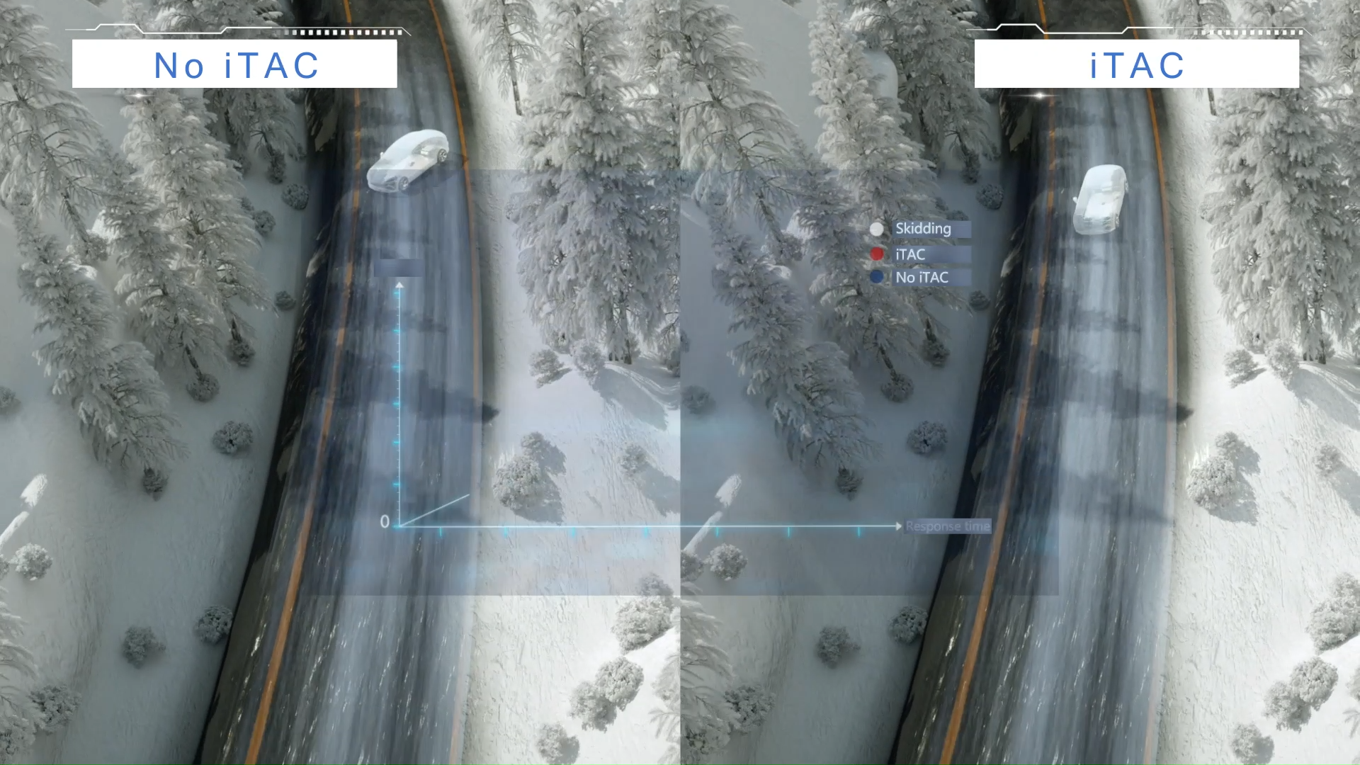 iTAC ersetzt die traditionelle Fahrdynamikkontrolle, die das Drehmoment beim Anfahren oder Beschleunigen begrenzt. Das iTAC-System arbeitet dagegen mit intelligenter Zuteilung des Antriebsmoments. Je nach Betriebsbedingungen kann es das Drehmoment verlagern, an einzelnen Rädern reduzieren oder sogar umkehren, d.h. gegen die Drehrichtung anlegen.